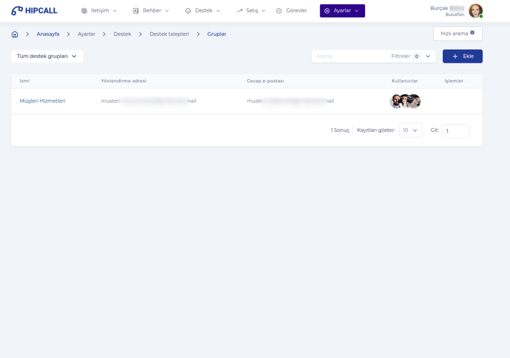 Tüm destek talebi gruplarını görüntülemek için, Ayarlar – Destek Talepleri – Gruplar sayfasını açabilirsiniz.